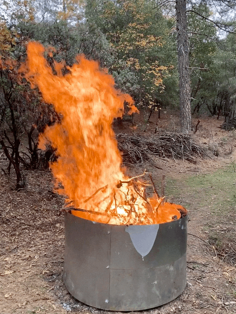 Using a pit will increase the efficiency producing more BioChar than an open above ground fire. There are dangers with starting a file pit below the surface, as root balls nearby can ignite and cause a bigger issue such as a forest fire. Therefore, its best to utilize a Kiln or Pyre, if the desire to make biochar arises, of which we primely advocate..